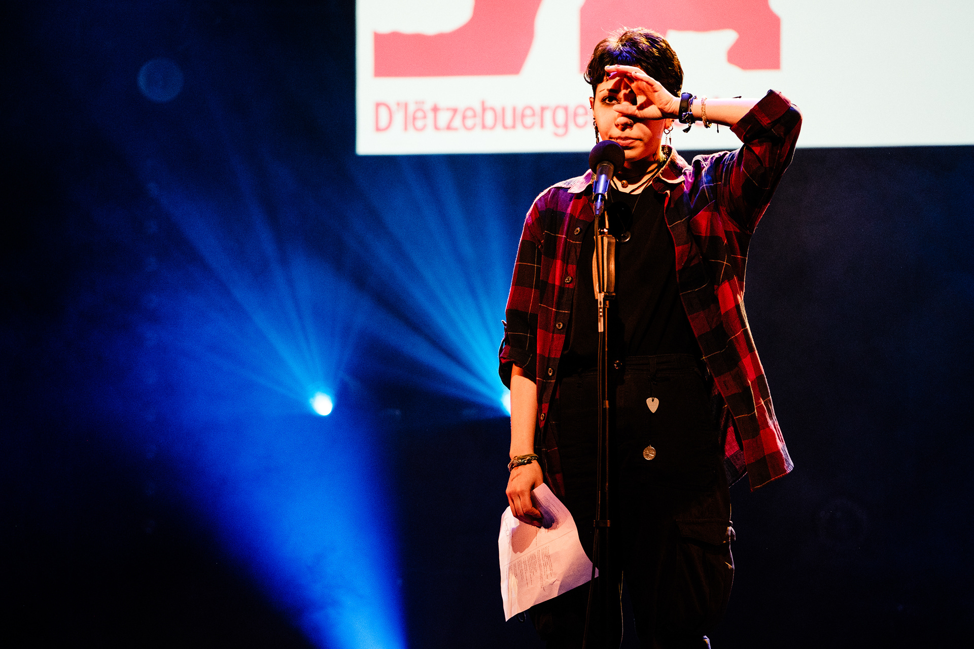 As the winner of the Luxembourg Poetry Slam Championship in 2024, she opened the finals of the European Poetry Slam Championship in Košice and has been celebrating poetry with her slamily ever since.